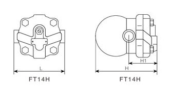 4、当热凝水再次进入疏水阀时,浮球随凝结水液位自动调节阀口大小,连续排出凝结水。 【外形连接尺寸】: