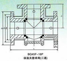 【产品名称:三通保温球阀】 【产品型号:BQ44F-16C/P、BQ45F-16C/P】 【产品介绍】: BQ44F、BQ45F三通保温球阀是在常规三通球阀法兰之间焊装一个金属夹套,侧面装有夹套的连接口,用于热水、蒸汽或导热油的进出。从而起到对球阀内部介质的保温效果,确保粘稠介质流通正常。主要应用于化工、石油、沥青、制药、冶金等行业的系统管路中,主要作用是输送在常温状态下会凝固、易结晶的介质。 【工作原理】: BQ44F、BQ45F三通保温球阀采用保温夹套设计,利用外部热源在阀门的外部循环加热,可以有效防止介质通过阀门时温度损失,保证介质的温度。主要用于石油、化工、沥青、冶金、制药、食品等各类系统中,防止以输送常规下会凝固的高粘度介质。
